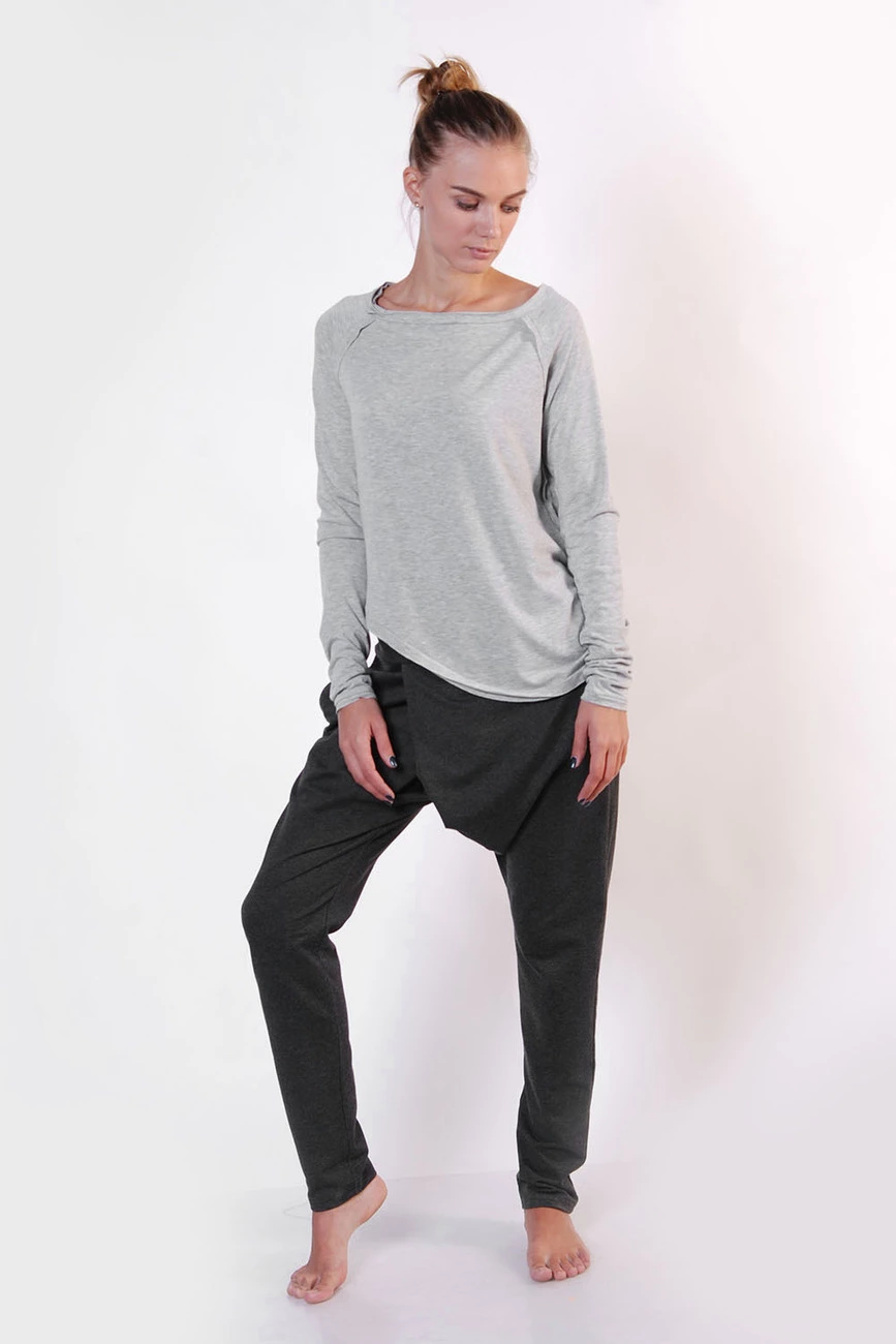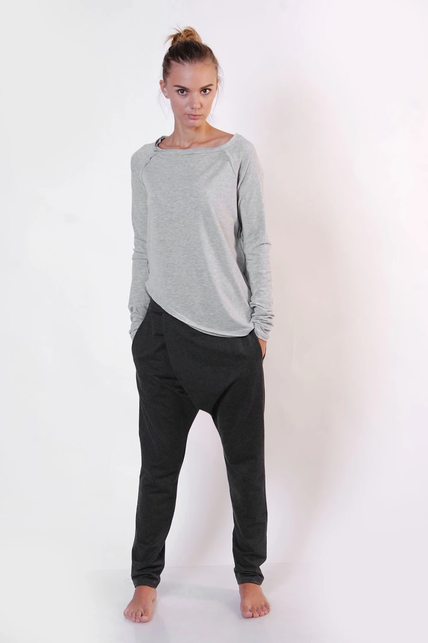 Удлиненные рукава реглан, асимметричный низ, необработанные края