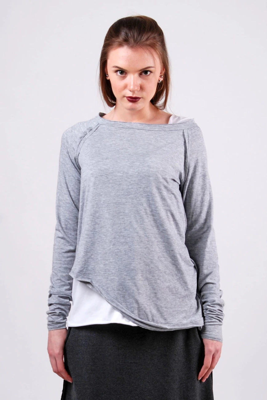 Асимметричный джемпер светло-серый 16-013