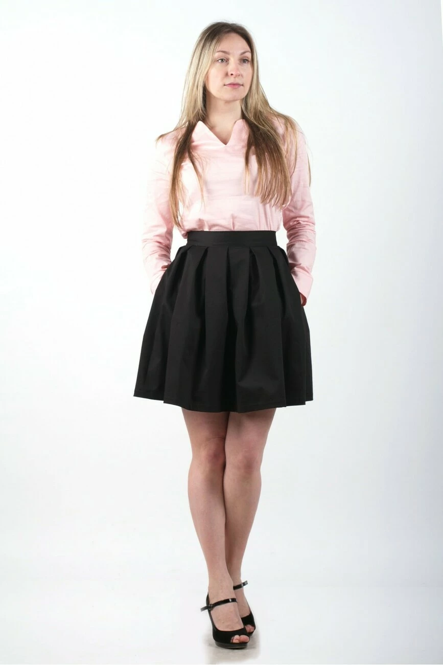Укороченная модель, длина до талии, длинный рукав, V-вырез, змейка в боковом шве.