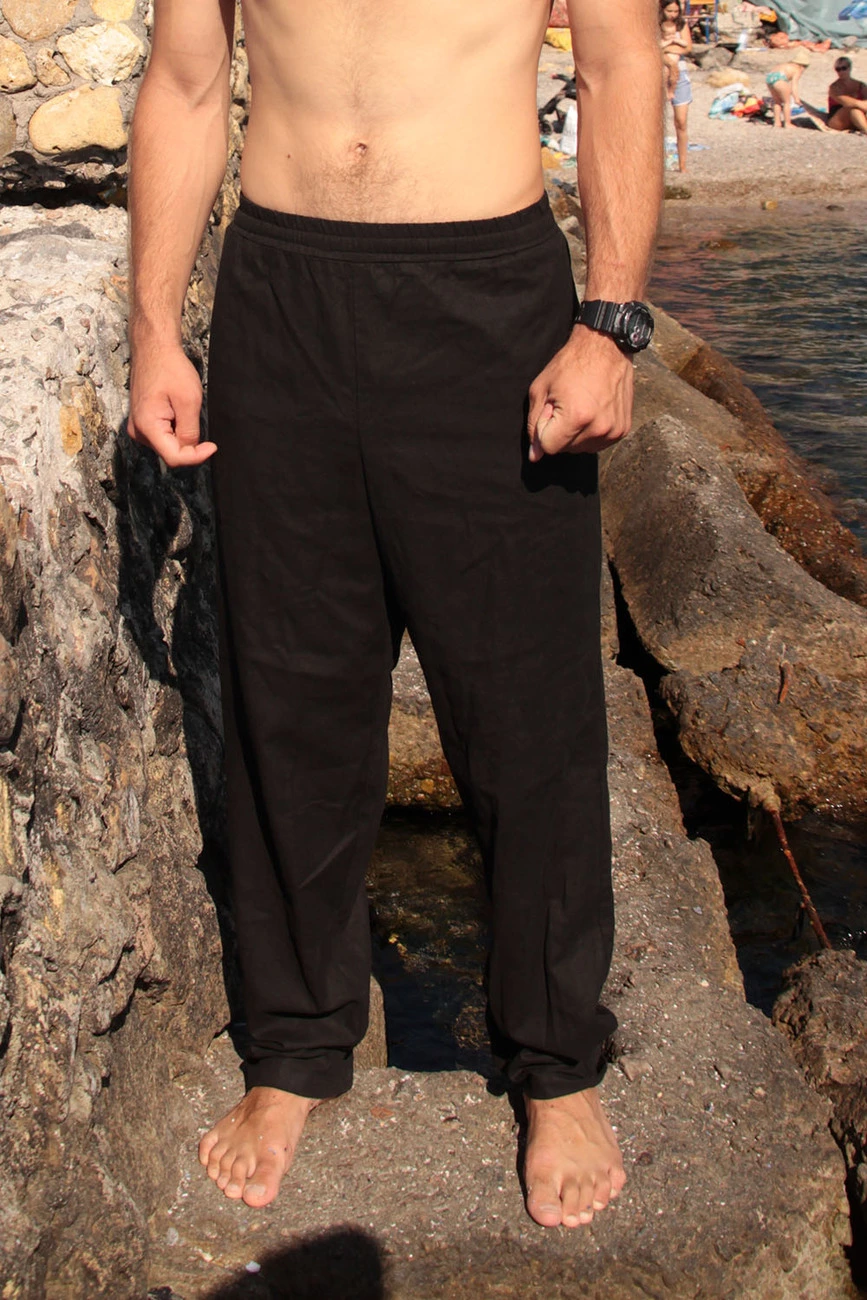 Свободные брюки с карманами, книзу заужены, модель унисекс.