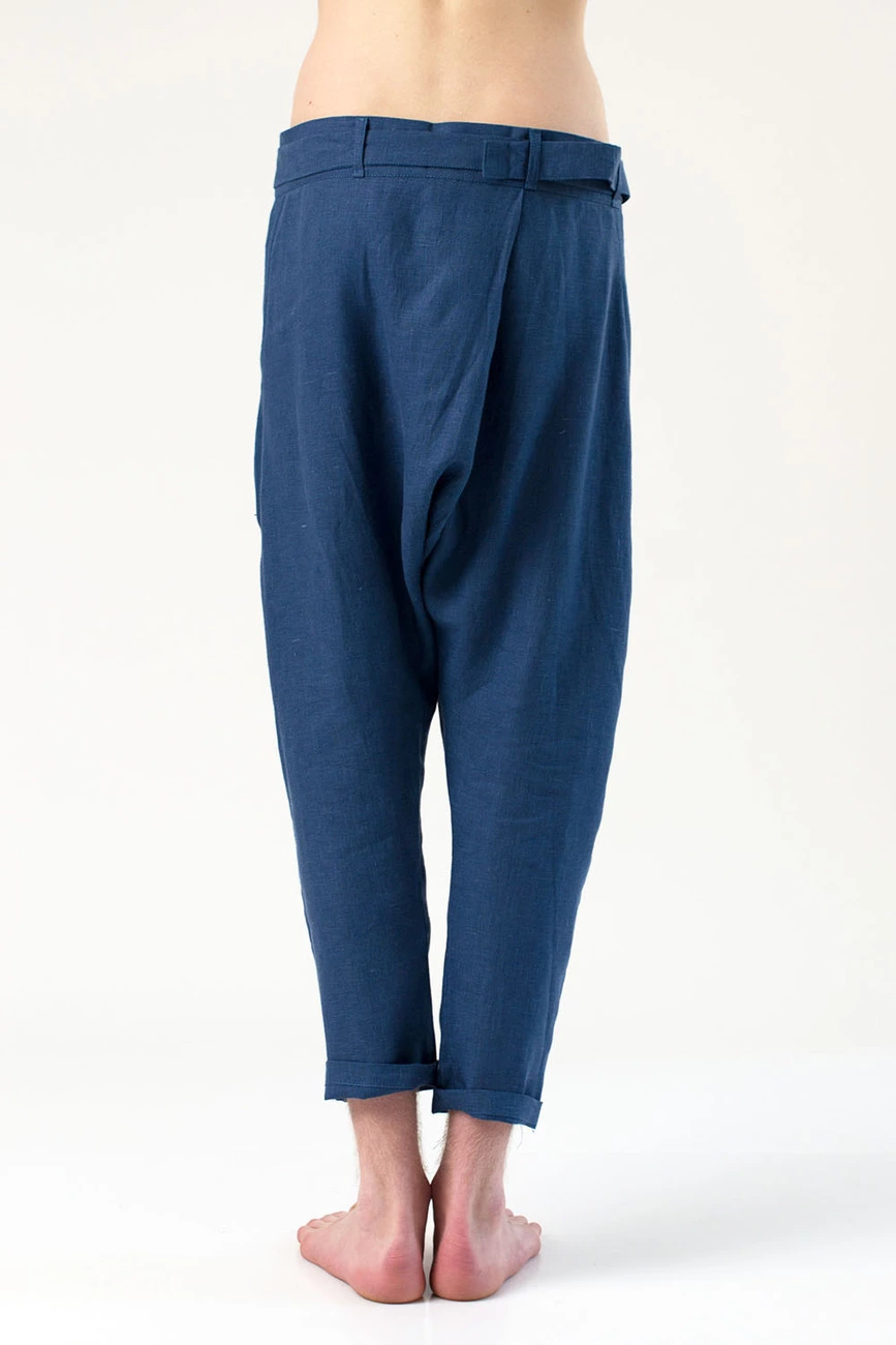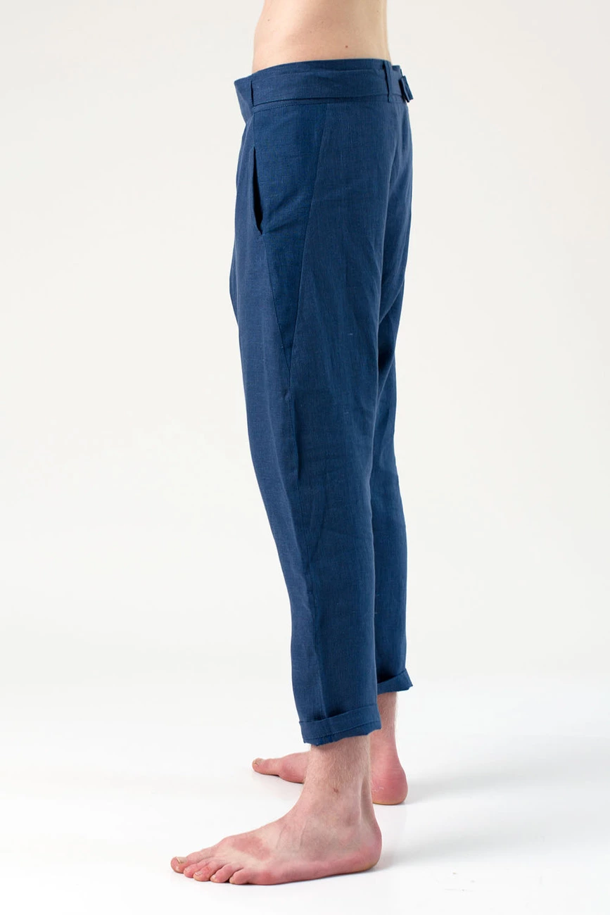 Брюки грави лен, синие
