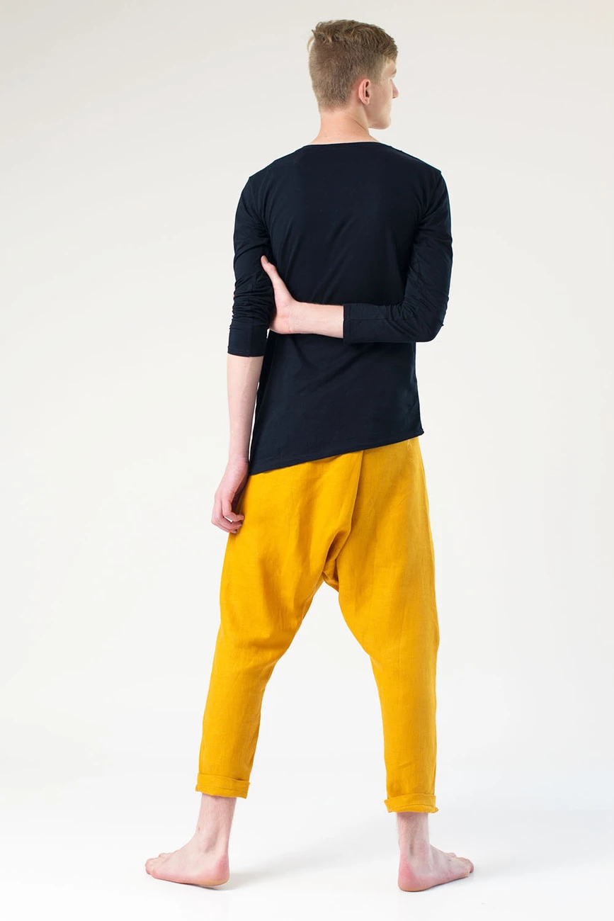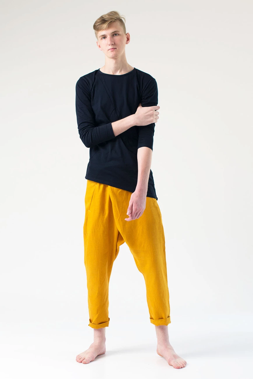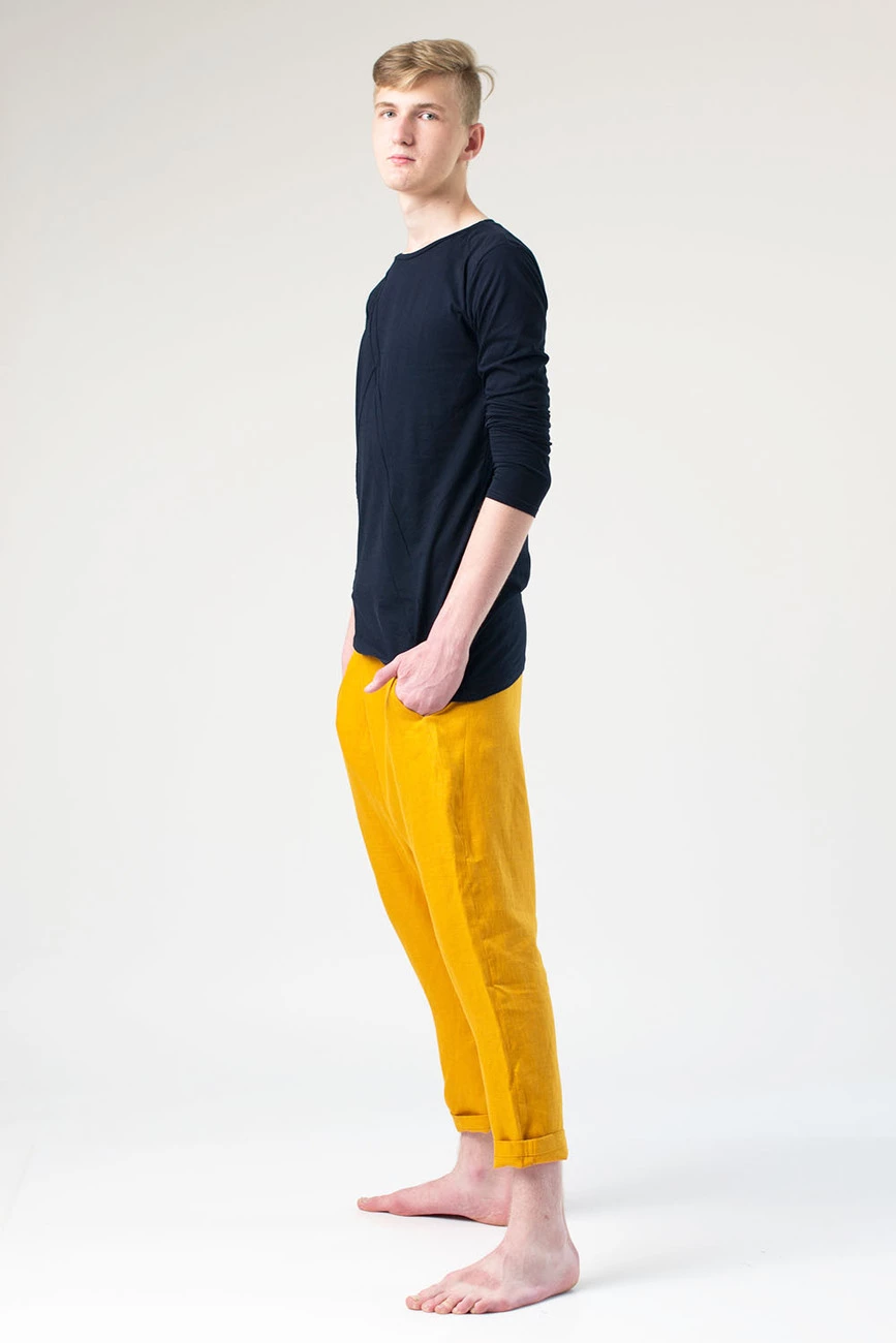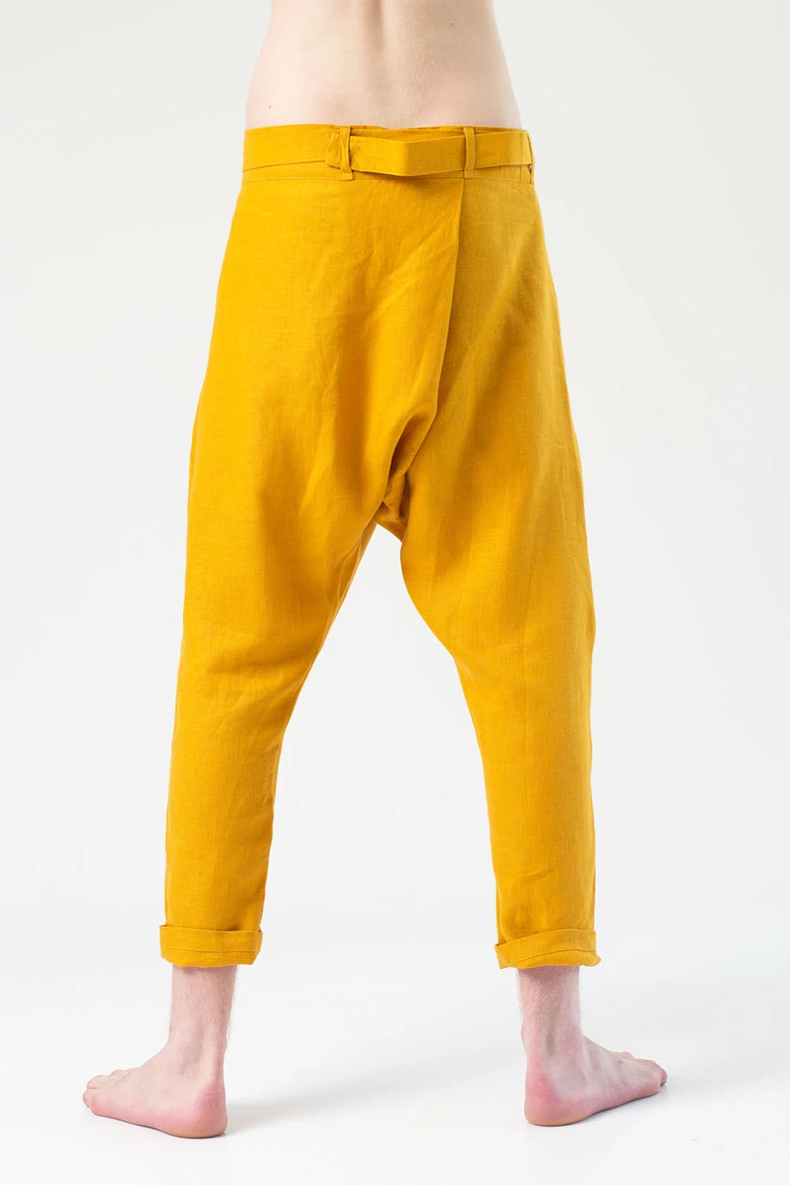 Брюки грави лен, желтые, мужские