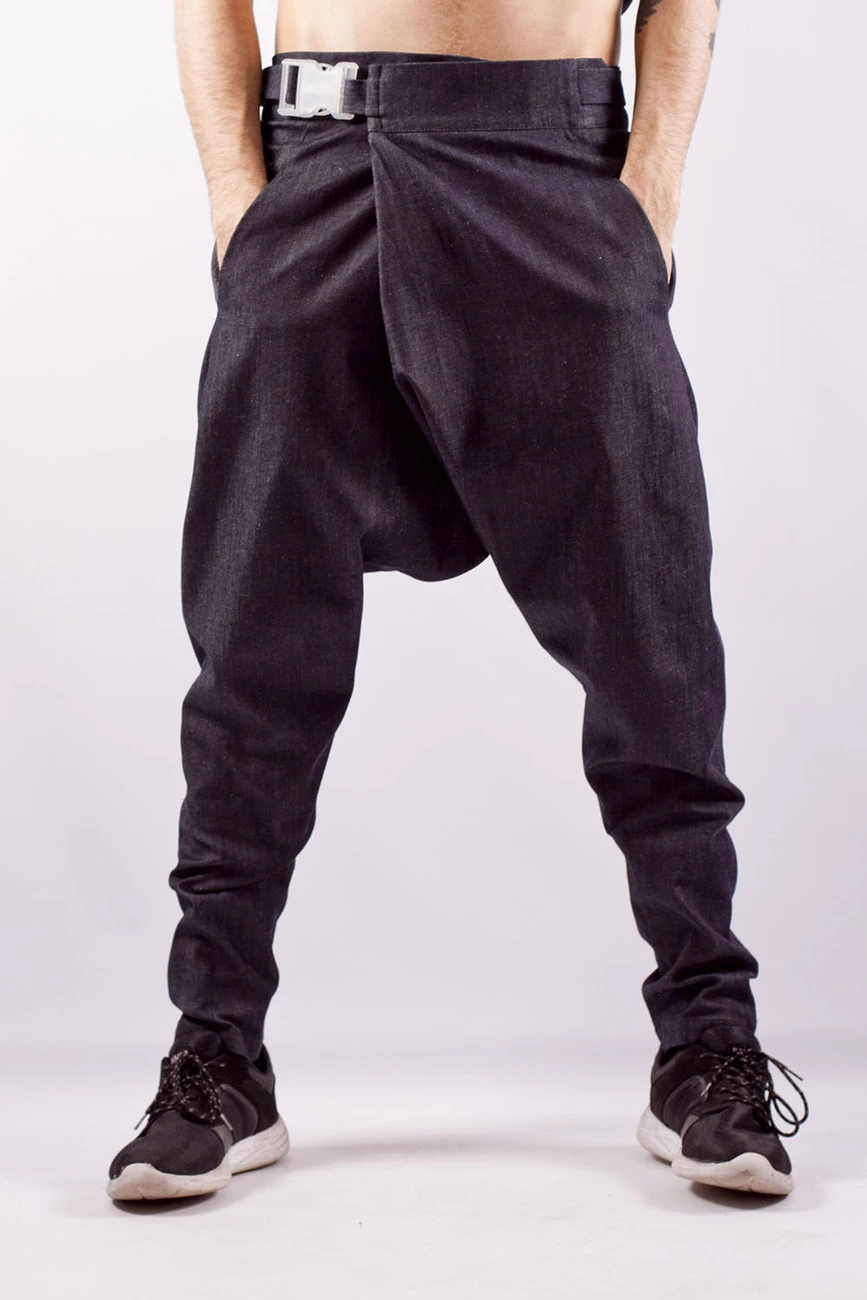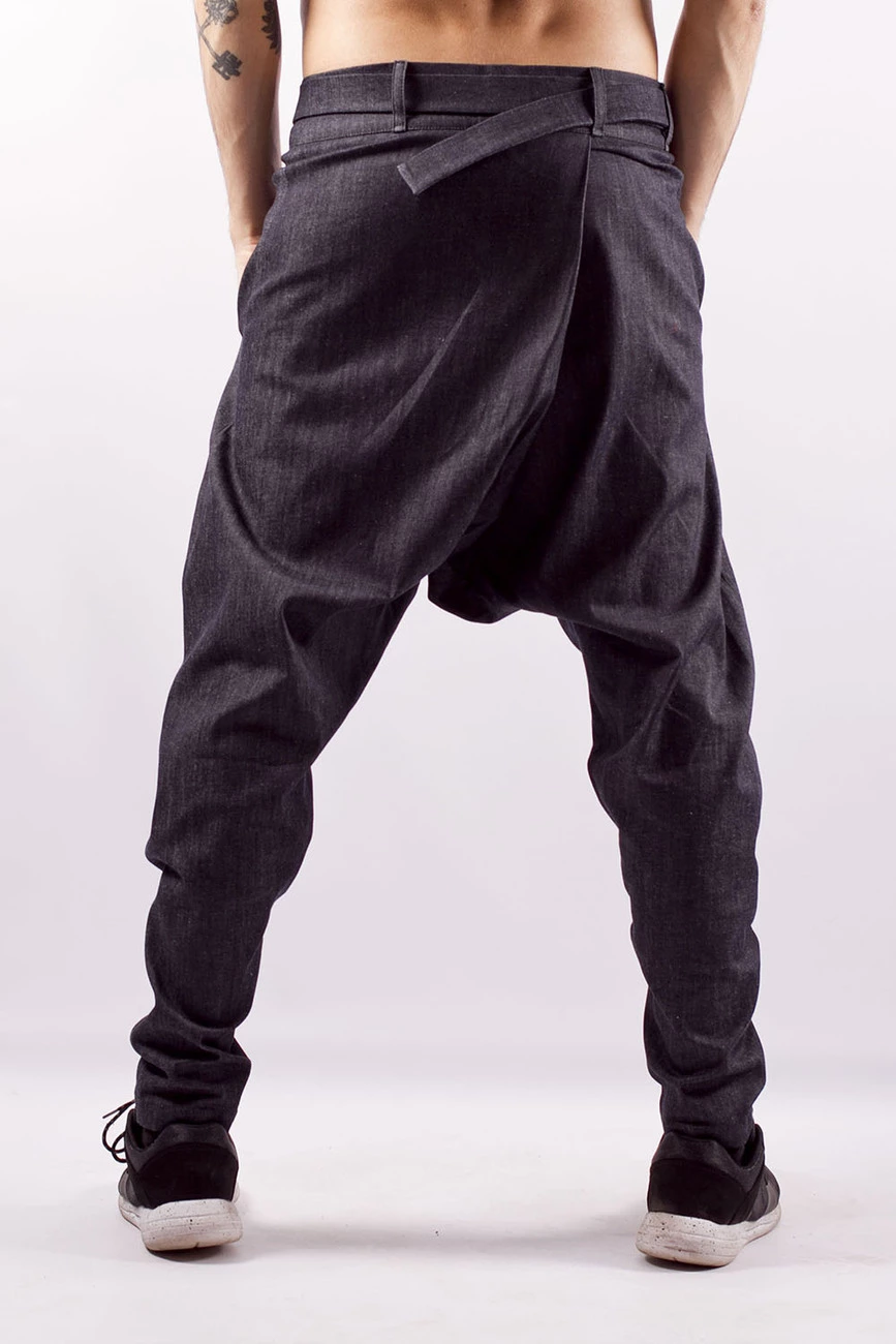 Брюки грави с поясом, синие джинс, мужские 16-040-3