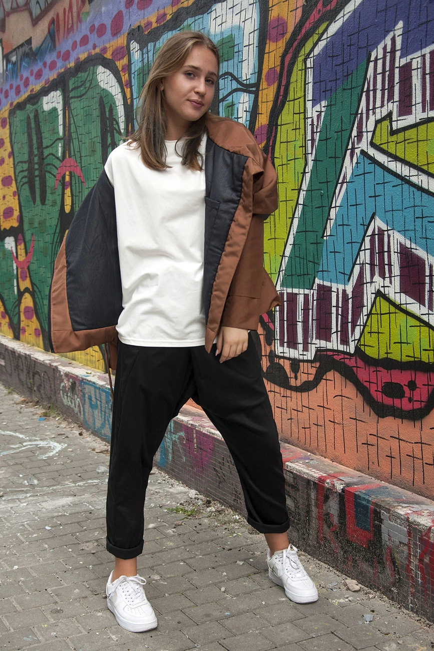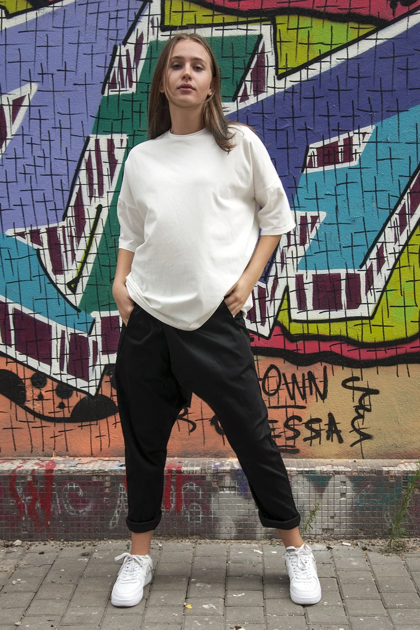 Свободные брюки с карманами, книзу заужены, модель унисекс.