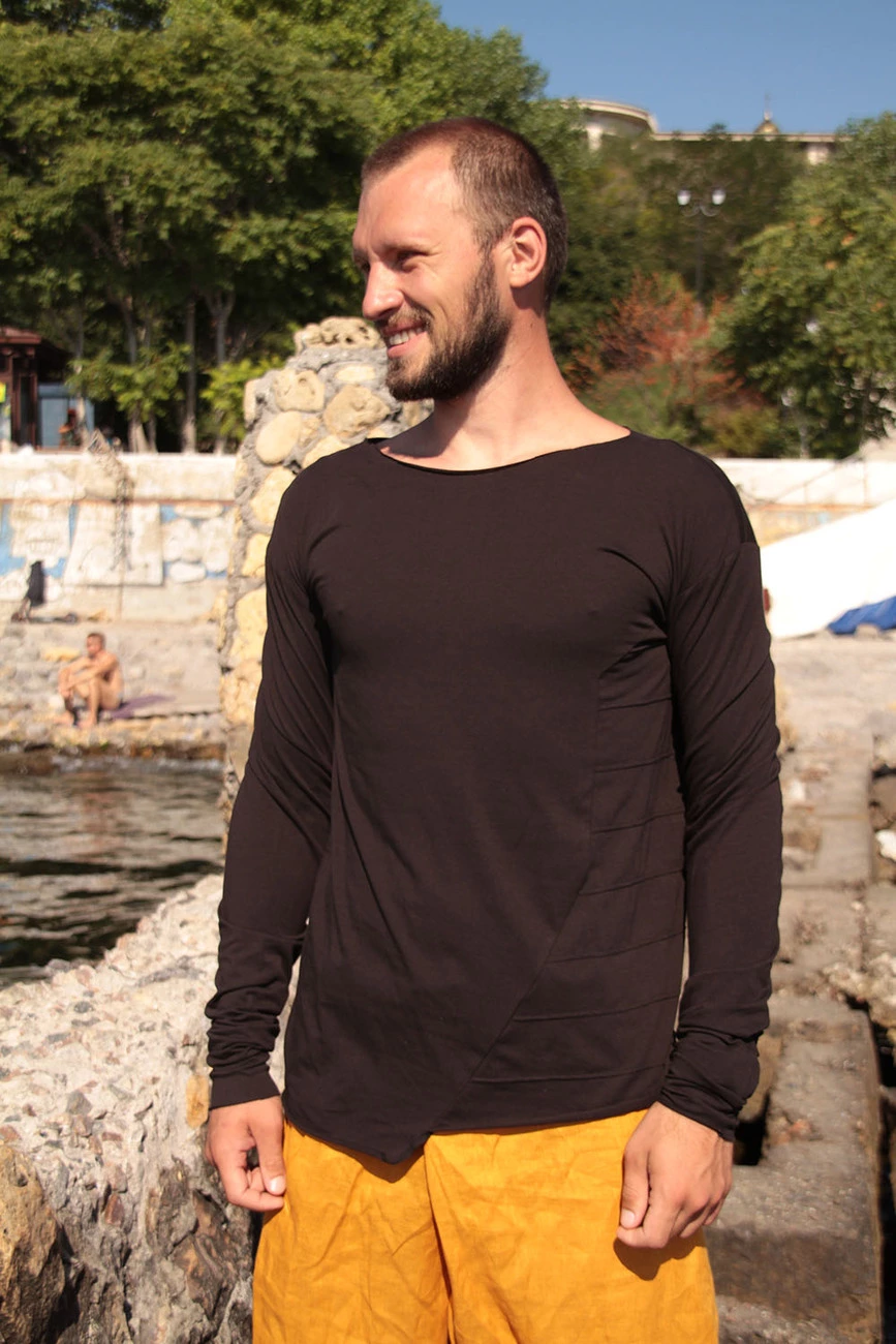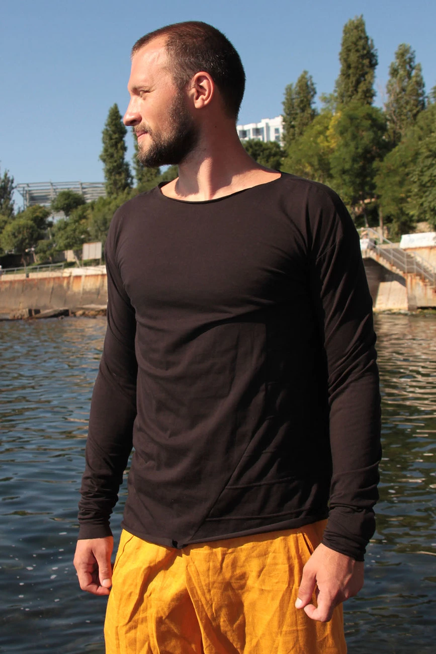 Асимметричная модель, удлиненные рукава, необработанные края изделия