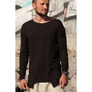 Асимметричная модель, удлиненные рукава, необработанные края изделия