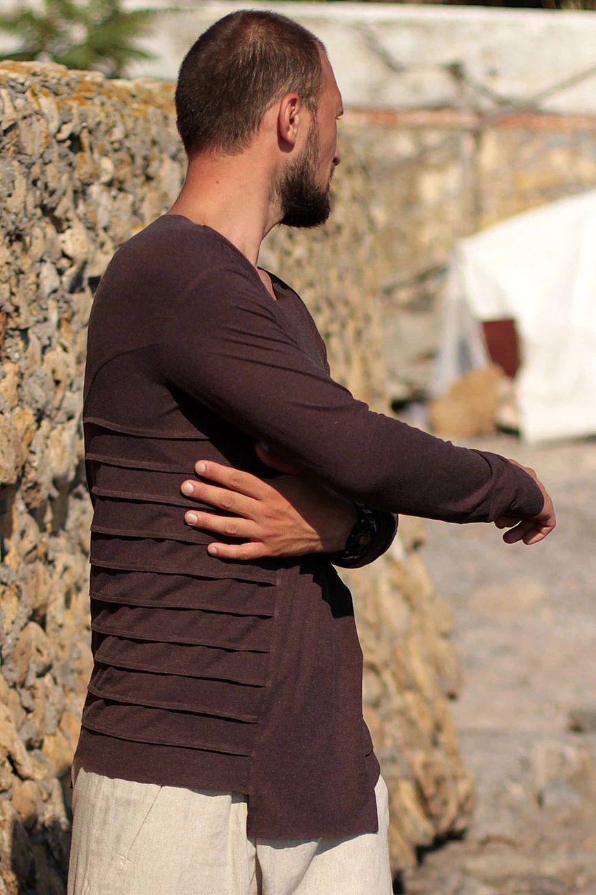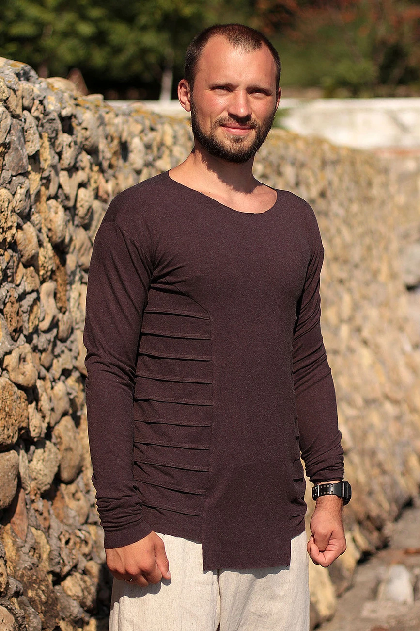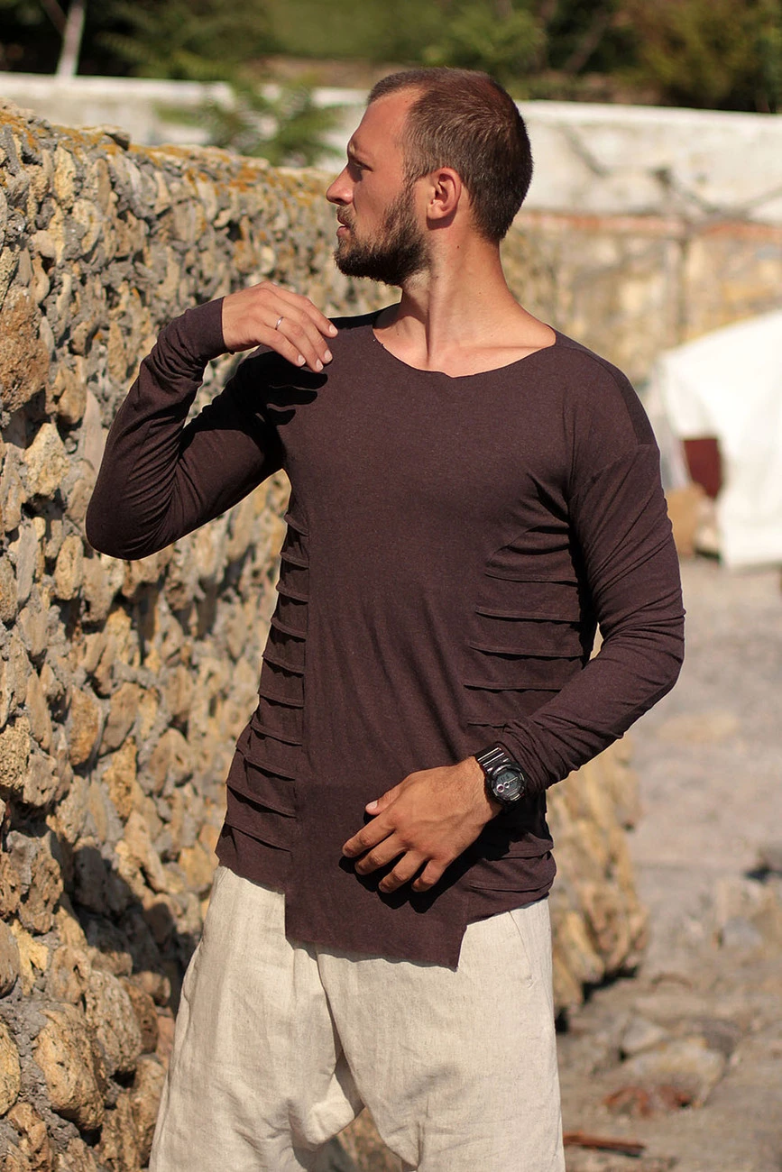 Асимметричная модель, удлиненные рукава, необработанные края изделия