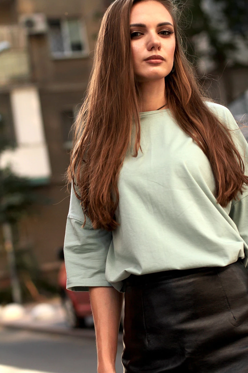 Футболка оливковая, женская оверсайз 20-003