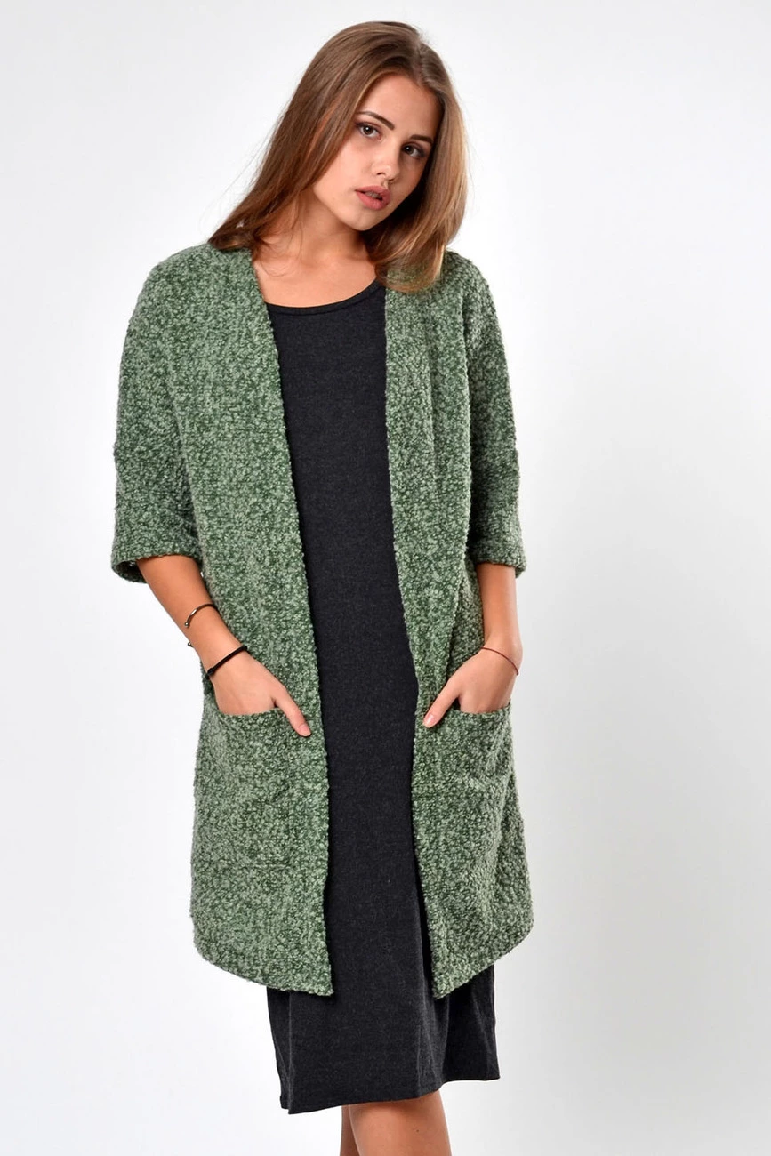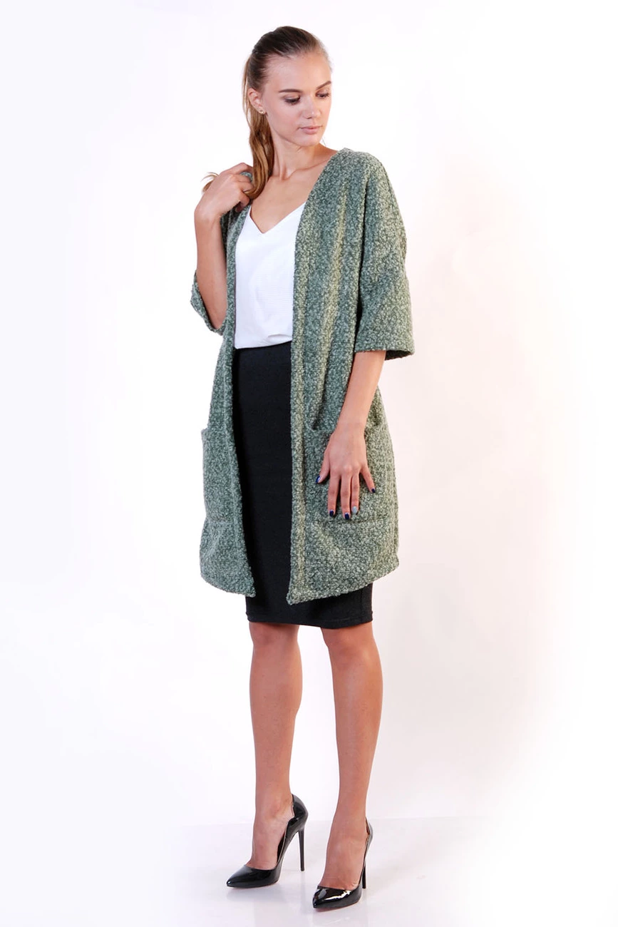 Кардиган с карманами зеленый 16-037