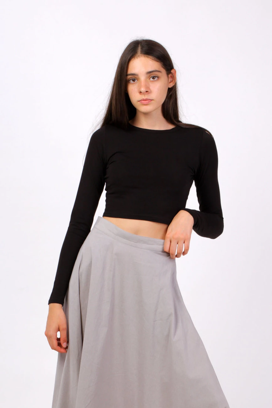 Укороченная модель с круглым вырезом и длинными