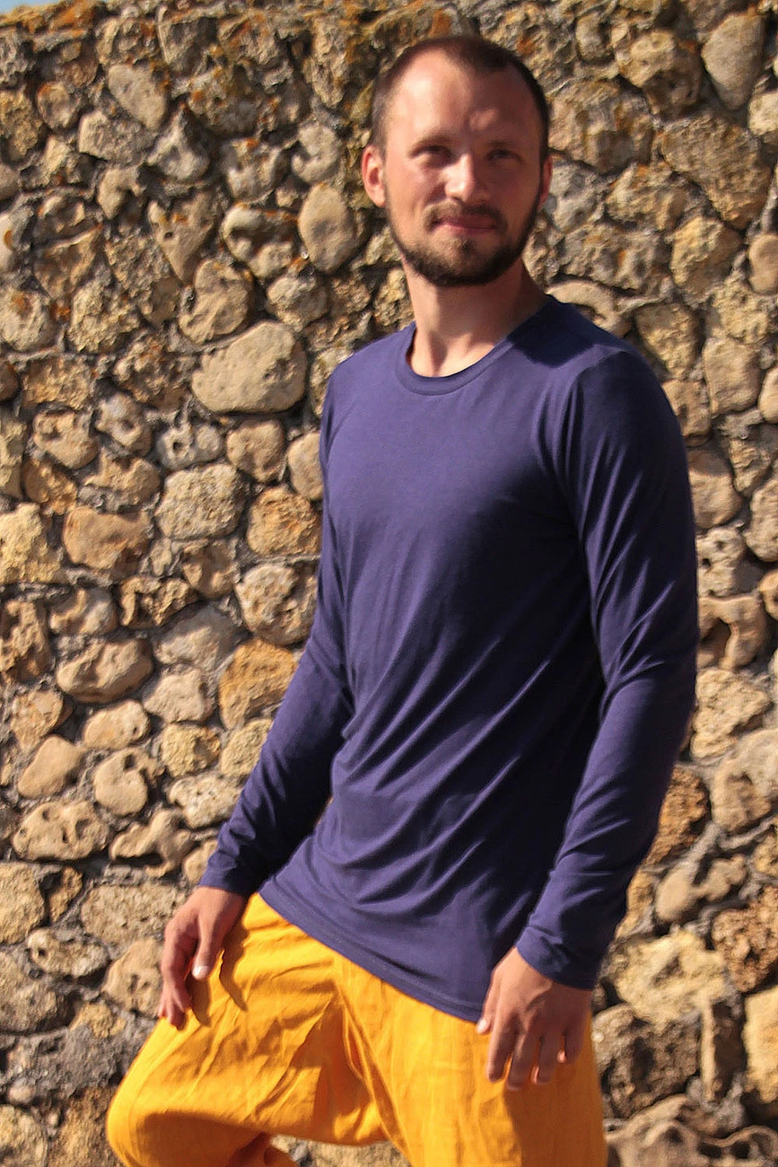 Лонгслив асимметричный, круглый вырез, длинные рукава