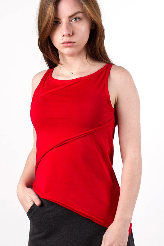 Укороченная асимметричная модель из тонкого трикотажа, декоративная отстрочка спереди