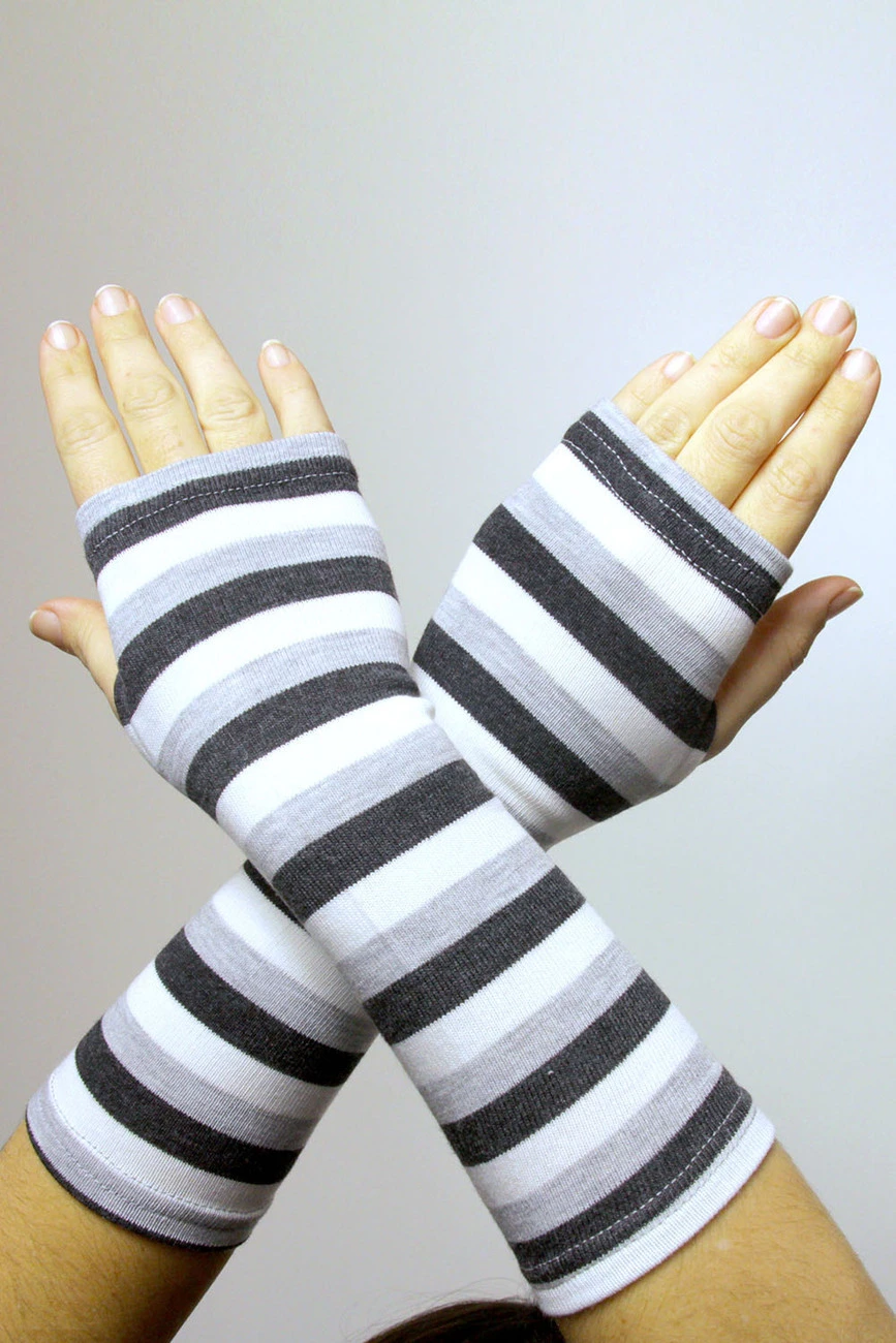 Митенки черно-серо-белые в полоску 16-018