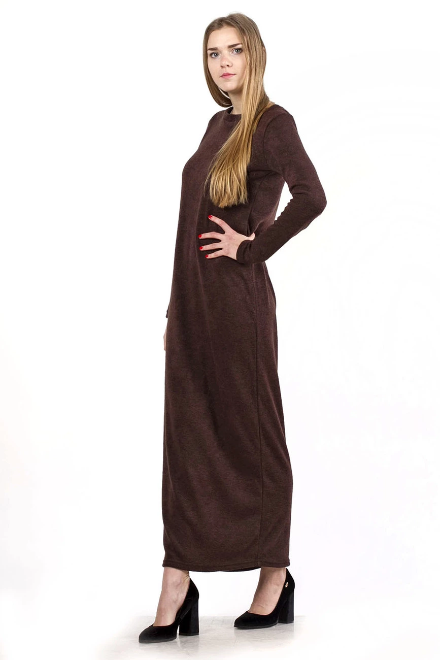 Платье из плотного трикотажа с круглым вырезом и длинными руквами