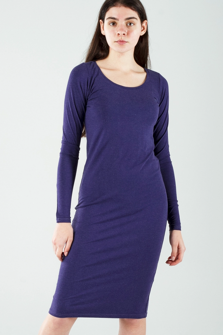 длина миди, круглый вырез, длинный рукав