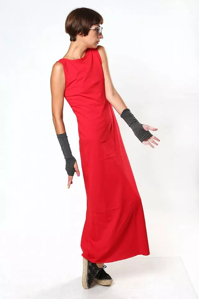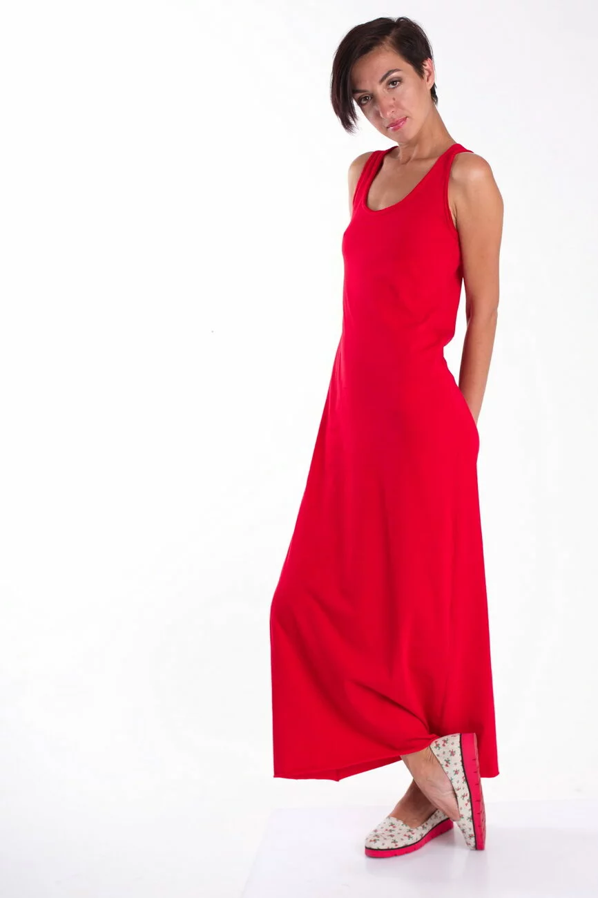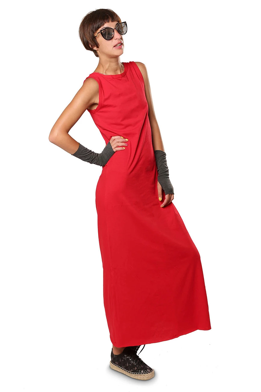Платье в пол красное 16-030