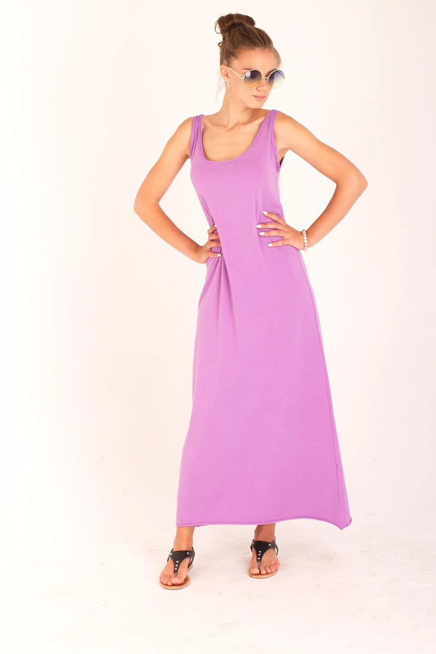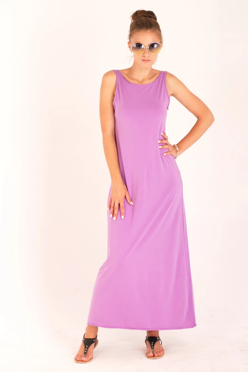 Модель из тонкого трикотажа, длина макси, без рукавов, круглый вырез впереди и сзади