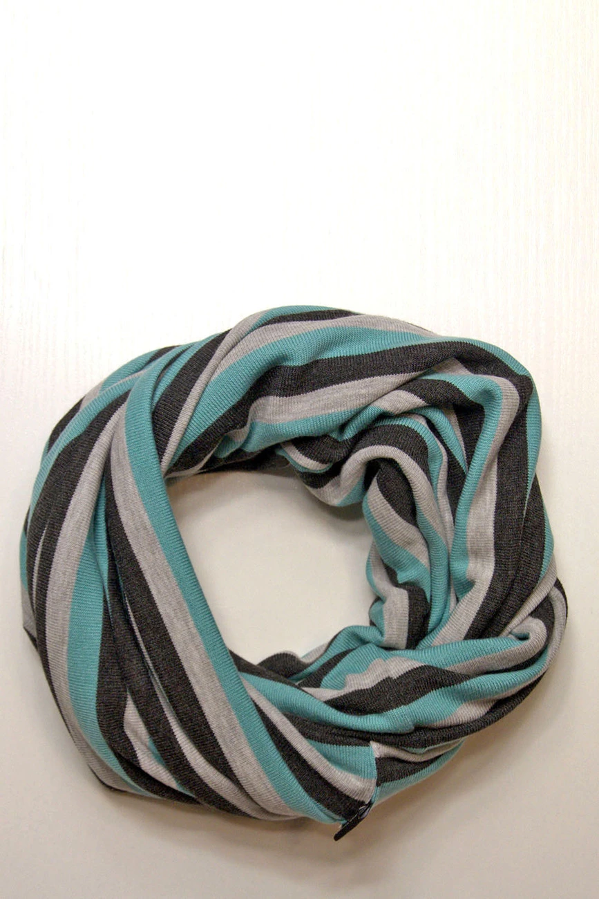 Шарф-снуд черно-серо-мятный в полоску, зимний 14-018-2