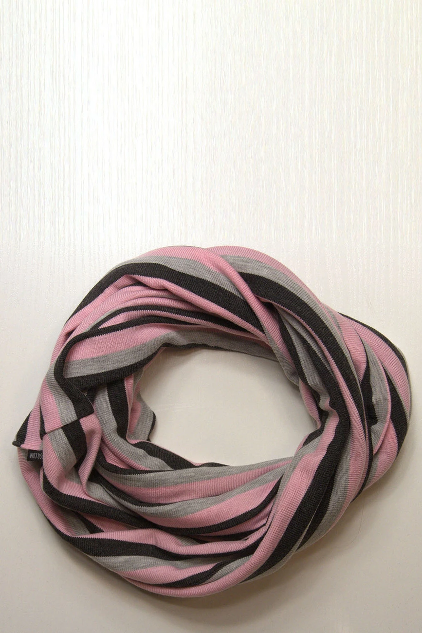 Шарф-снуд черно-серо-розовый в полоску, зимний 14-018-2
