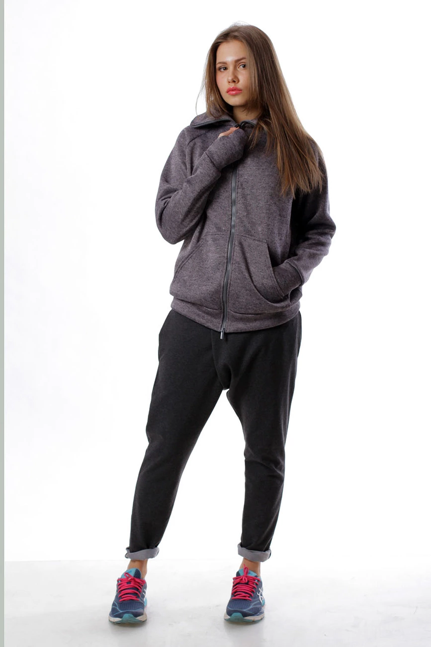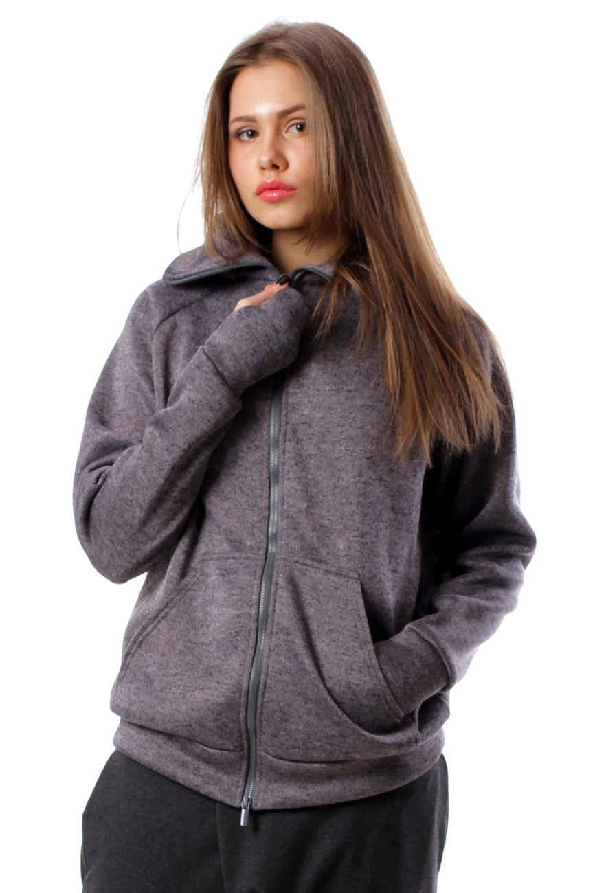 Толстовка на змейке, серая, женская 16-047