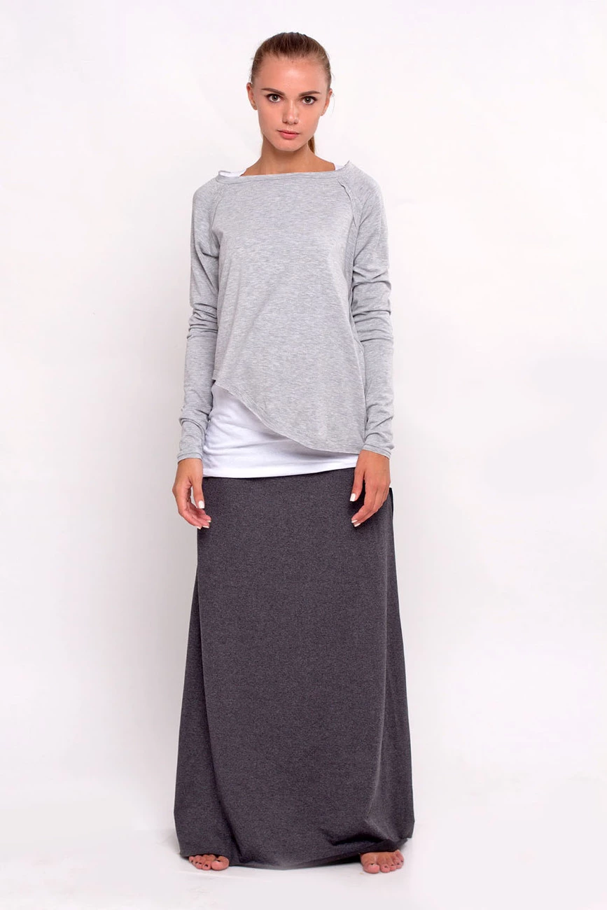 Трикотажная юбка-макси антрацит 16-011
