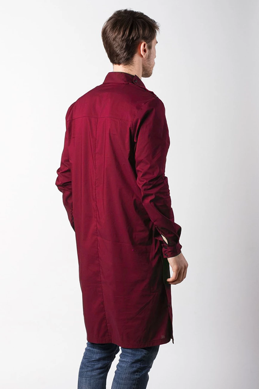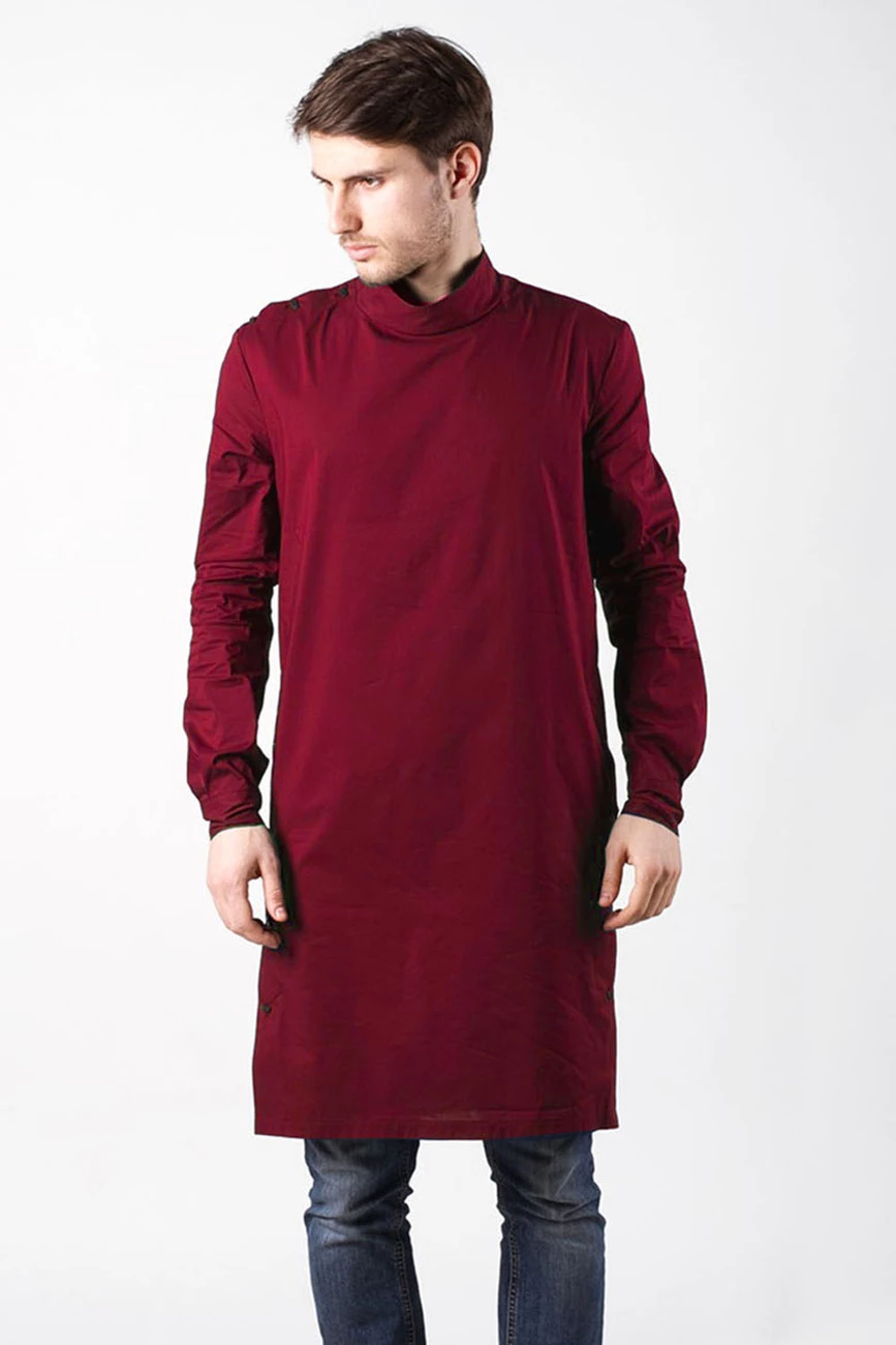 Удлиненная мужская туника, длинные рукава, воротник-стойка,